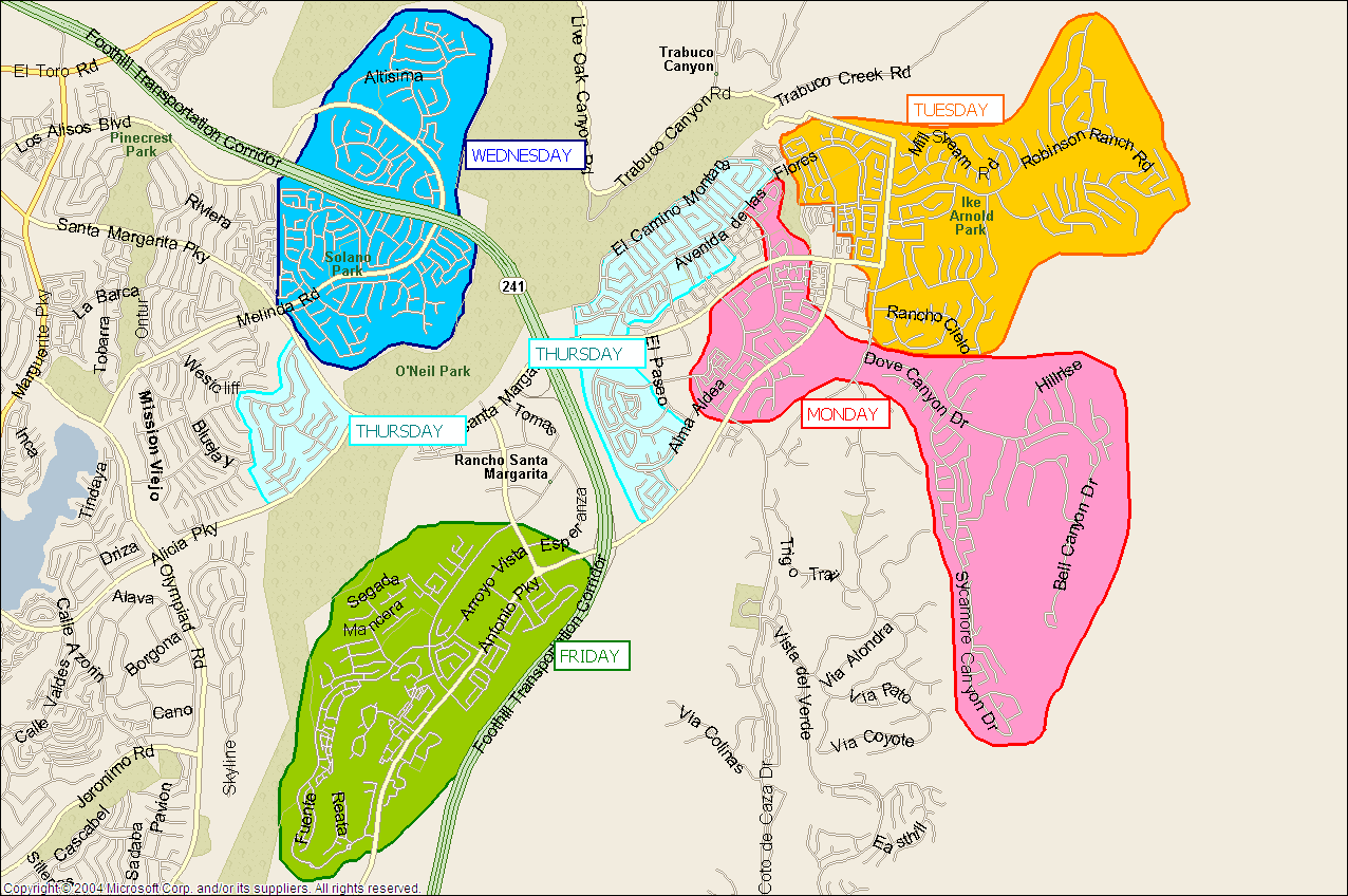 View the Waste Collection Map (GIF) to see the schedule pick-up days for particular areas.
